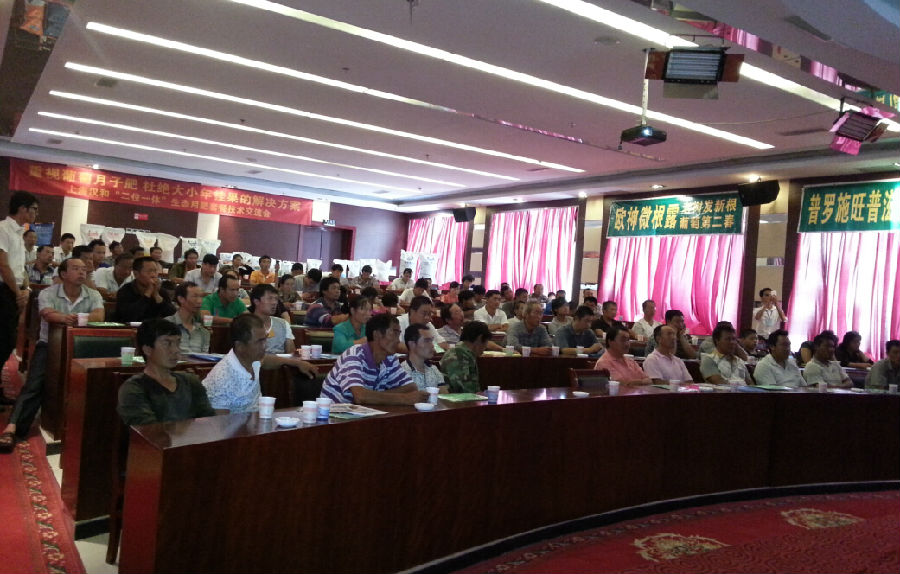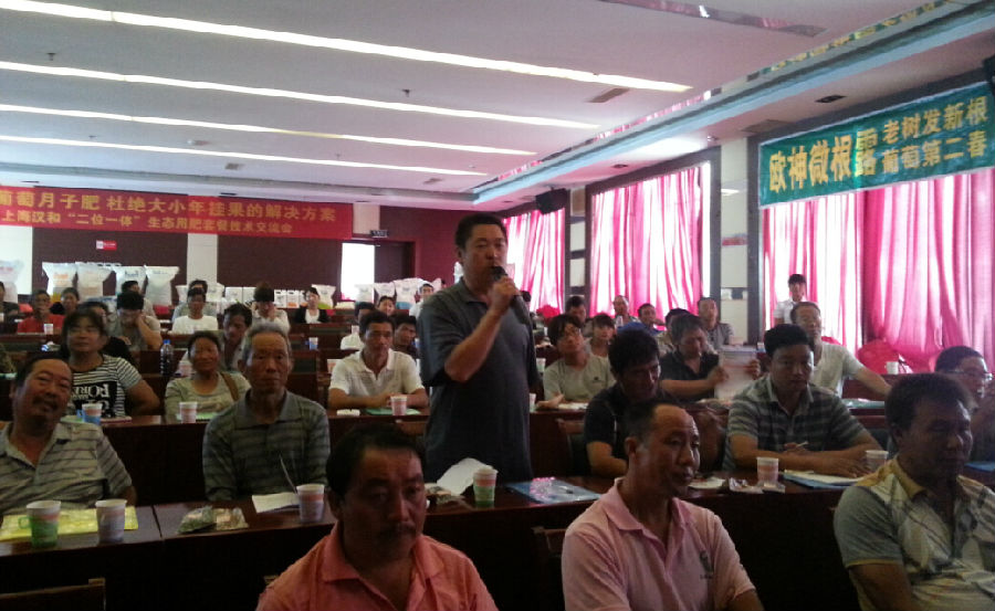 農(nóng)業(yè)部規(guī)劃設(shè)計研究院高級農(nóng)藝師、中國植物營養(yǎng)與肥料學(xué)會理事、漢和生物特聘農(nóng)化專家呂運(yùn)教授為在座種植戶及零售商講解“重視月子肥,杜絕大小年掛果的解決方案”。在場種植戶就葡萄種植踴躍提問,更有種植大戶分享使用上海漢和產(chǎn)品獲豐收的感受,互動參與熱情高漲。會后農(nóng)民朋友反響熱烈,紛紛表示交流會內(nèi)容通俗易懂并且切實解決了他們種植過程中遇到的問題。
