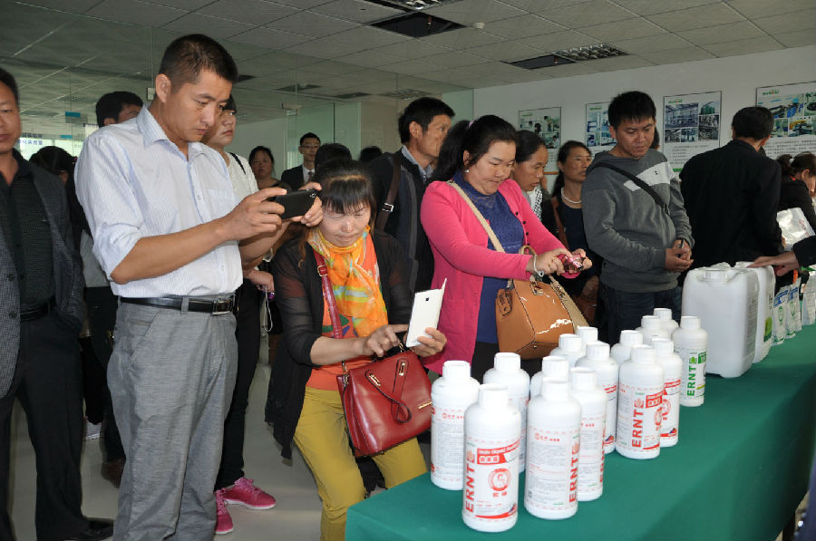 經過與漢和生物研發中心、液體肥流水線的近距離接觸,云南客戶對漢和生物先進的生產設備和雄厚的研發實力有了進一步的了解。一路參觀下來,一些客戶已然對“歐神”、“普羅施旺” 品牌下的更多產品產生興趣,紛紛拍照記錄產品名稱,詢問產品性能。