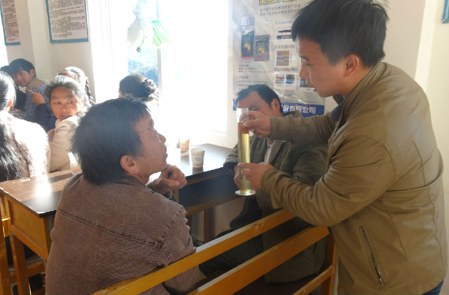會(huì)上,瑞豐農(nóng)資公司周總就農(nóng)戶提出的產(chǎn)品上的疑問做了解答,并現(xiàn)場對水溶肥“普羅施旺”普滋靈的水溶性做了實(shí)驗(yàn),大大消除了農(nóng)戶對水溶肥應(yīng)用于冬桃上的顧慮,并稱贊“漢和產(chǎn)品是好產(chǎn)品”!