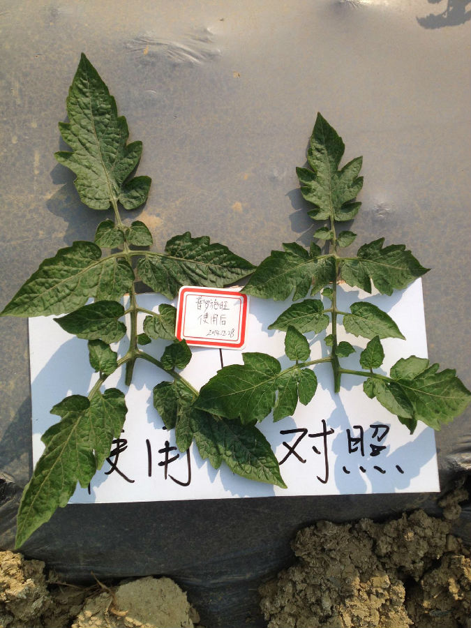 1.整體效果對比:試驗區植株長勢茂盛、葉片濃綠;對照區長勢較差、植株較矮、葉片相對較黃。如下圖: