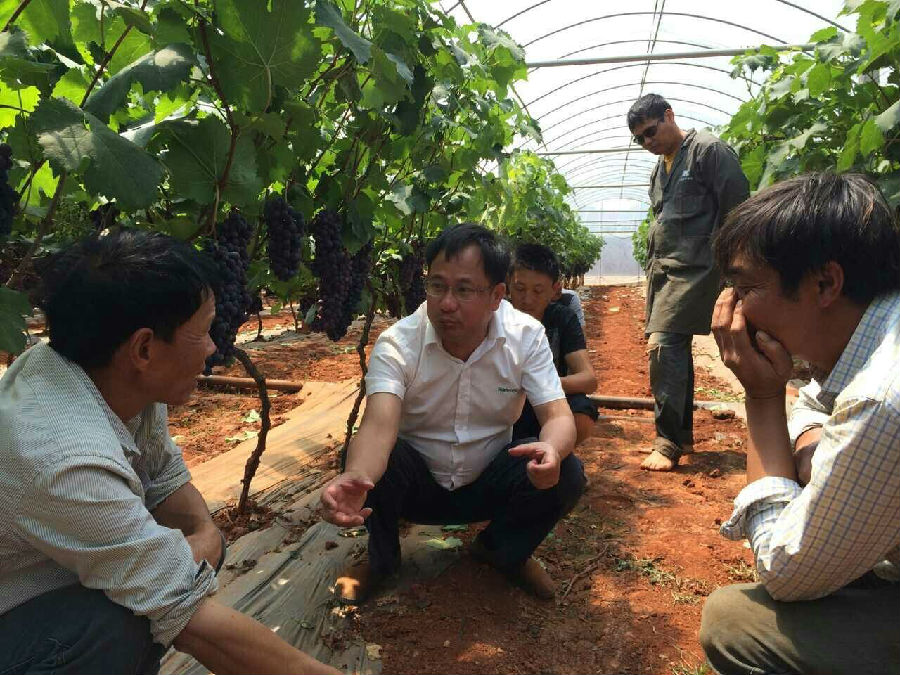 云南省紅河州建水縣擁有不可多得的葡萄生長所需的自然資源條件,目前葡萄種植面積10萬余畝,近日,受廣大種植戶邀請,漢和生物特聘農化講師呂運教授前往此地解決葡萄栽培過程中碰到的,例如花芽退化、水肥管理、大小果等問題,實地指導,為農戶提供實實在在的服務。