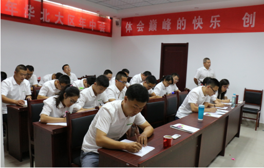 會議第三天,與會人員分成兩隊,戰(zhàn)狼隊和先鋒隊展開對決,進行現(xiàn)場對白演練并安排了產(chǎn)品考試。