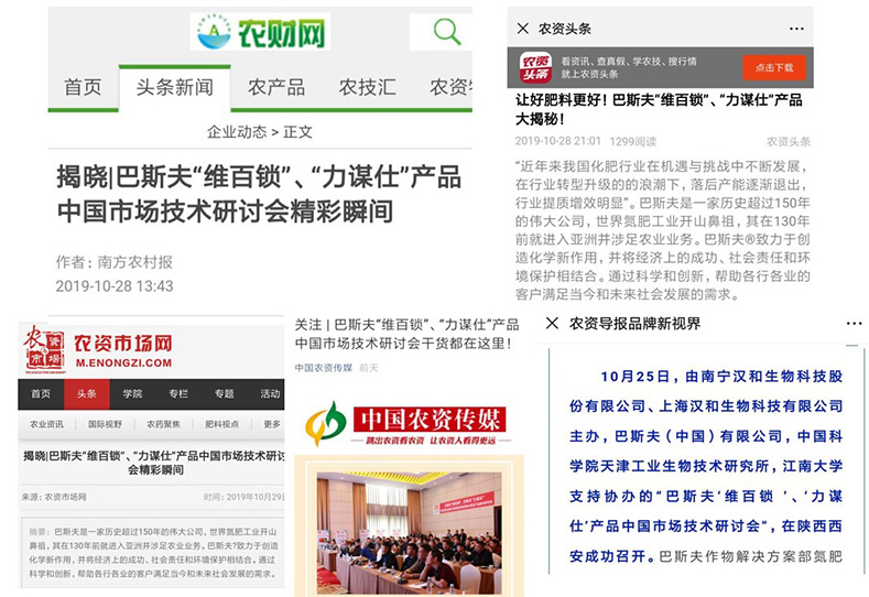 2019年10月25日,“巴斯夫‘維百鎖’、‘力謀仕’產品中國市場技術研討會”在陜西西安成功召開。漢和研發新品——歐神上品全水溶復合肥在會上首次亮相,無數客戶伙伴爭相訂購。各媒體紛紛轉發