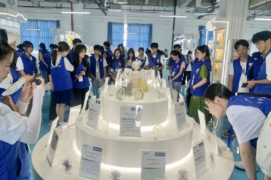 同學(xué)們先后參觀了漢和生物的研發(fā)中心、產(chǎn)品體驗中心及微生物發(fā)酵車間,親身感受國內(nèi)唯一一家獲得“合成生物工程研究中心”認(rèn)定企業(yè)的科研實力。