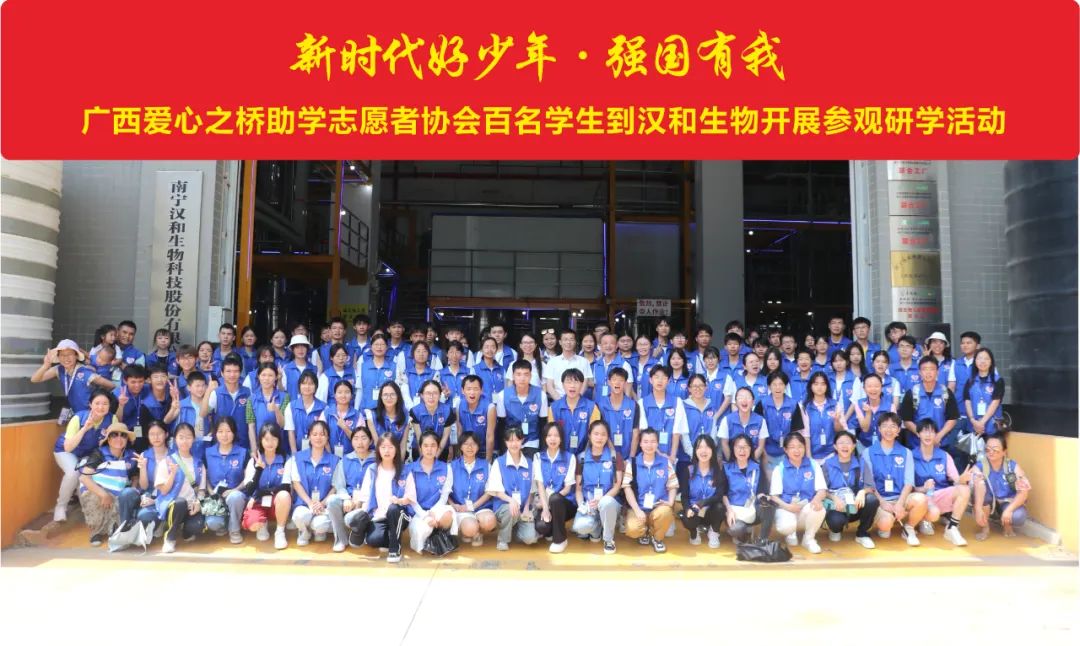 廣西愛心之橋助學(xué)志愿者協(xié)會組織百名學(xué)生到漢和生物開展參觀研學(xué)公益活動