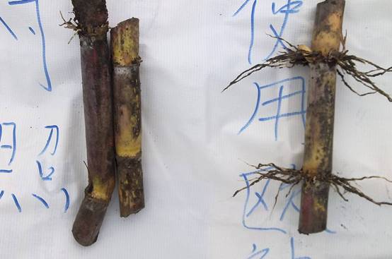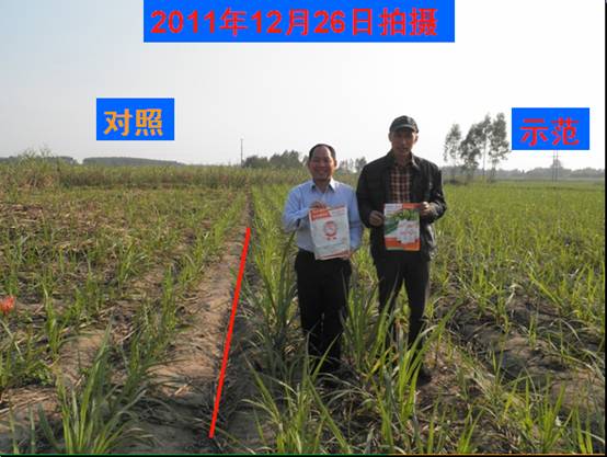 蔗農陳家均在自家甘蔗示范田,用2包“歐神”鈣鎂硼鋅鐵混合尿素、鉀肥在3至4葉期撒施(即在底肥或芽肥時使用),一個月后,陳家均發現示范田的甘蔗行根須快、白根多,且蔗芽粗壯實骨、出苗整齊,他十分滿意!