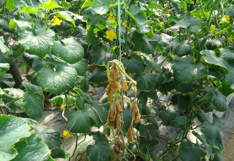 3月16日,經(jīng)當?shù)氐牧闶鄣昀习宓耐扑]和介紹,了解到該農(nóng)戶的黃瓜有大量死棵爛苗的現(xiàn)象,遂決定做此次試驗,一來驗證公司產(chǎn)品微根露的效果,二來效果出來后,說服零售店進貨。