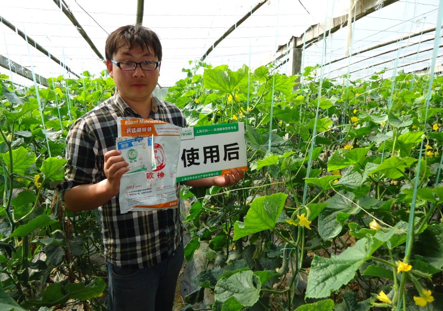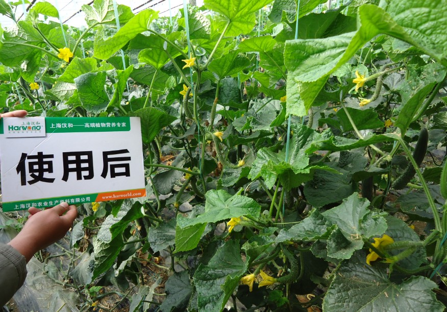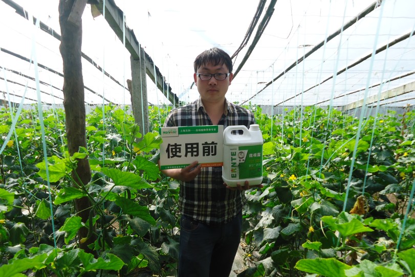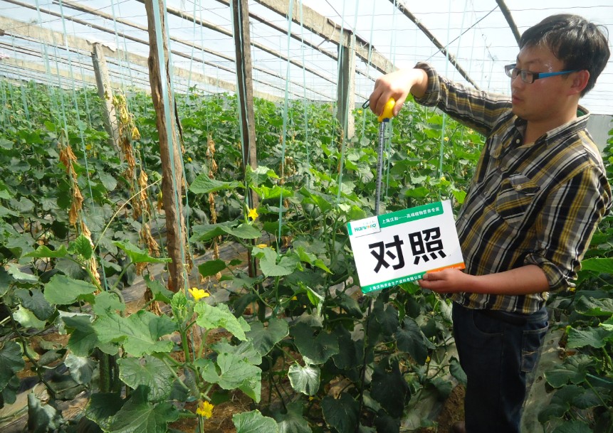 開花和坐果:使用區(qū)和對照區(qū)分別數(shù)10棵黃瓜的坐果數(shù),使用的10棵坐果61個,對照區(qū)10棵坐果46個,使用的區(qū)域坐果量用肉眼明顯的能觀察到比較多