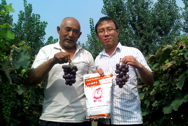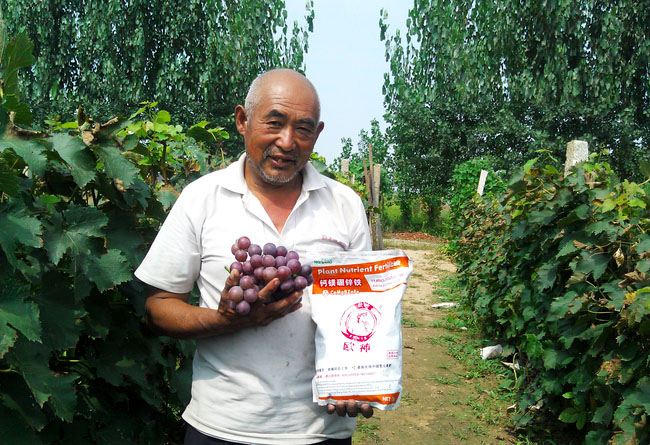 王夕軍是青島平度市門村鎮曲家莊村一位普普通通的農民,今年58歲,已經種了28年的葡萄了,現在擁有一個將近10畝的葡萄園。這些年來,雖然葡萄產量很好,但有幾個問題一直困擾著王夕軍,葡萄根系弱小,后期吸收營養困難,常常裂果情況很嚴重,再就是葡萄的品質并沒有隨著產量的提高而提高,這些問題一直困擾王師傅。當地客戶技術人員去葡萄園看了一圈后找到了原因,原來是王夕軍施肥時只注重氮磷鉀的使用,而忽略了微量元素的使用,導致了葡萄因缺少微量元素而抵抗力下降,這才出現根系弱小、大片裂果和葡萄的口感不好情況。聽了技術員的指導后,他就到村里、鎮上到處去找“微量元素”,雖然也找到了一些微量元素肥,但使用后效果還是不明顯,裂果依然很嚴重。在一次和朋友聊天中,他偶然聽到鎮上有一家農資超市賣一種英國進口的中微量元素肥,上海漢和公司全國總代理。剛開始,半信半疑,抱著試試看的態度買了規格為2包2公斤規格歐神鈣鎂硼鋅鐵,在春季施用底肥的時候就拿出了一畝地做了個實驗。9月屬于葡萄收獲的季節,他拉著我們的手說:“你們那個歐神鈣鎂硼鋅鐵中微量元素肥料太神奇了,這一季葡萄根系非常發達,大量中微量元素促進了根系分支,營養吸收充分,葡萄不僅僅沒裂果,而且口感非常好,到市場賣價比一般都貴不少”。