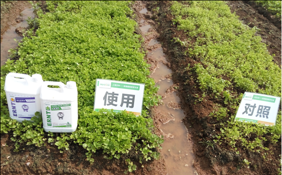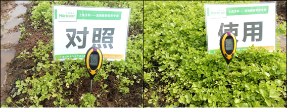 效果說明:芹菜適宜土壤pH為6.0-7.6,對照區芹菜地偏酸,而使用微生物菌劑+微根露能有效調節土壤酸堿性,使pH值趨于正常。