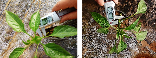 試驗組與對照組同時用肥,試驗組與對照組相比,莖稈增加0.36mm,即試驗組辣椒苗更加健壯。