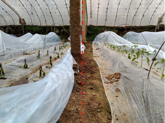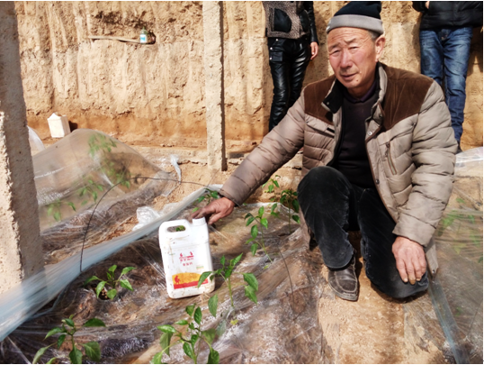1月18日試驗前,因為低溫影響,作物根系發黑,辣椒苗長勢弱。辣椒苗個子矮,葉片發黃。