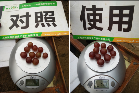 效果說明:使用套餐的葡萄直徑比對照大1.10mm。