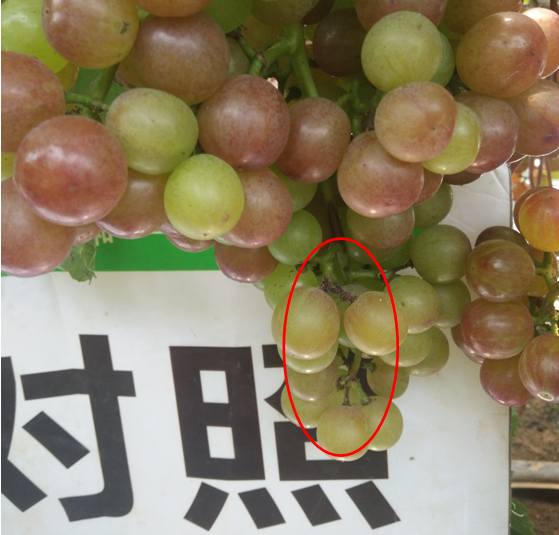 效果說明:使用后掛果多但整體表光著色比較整齊,而對照著色參差不齊。